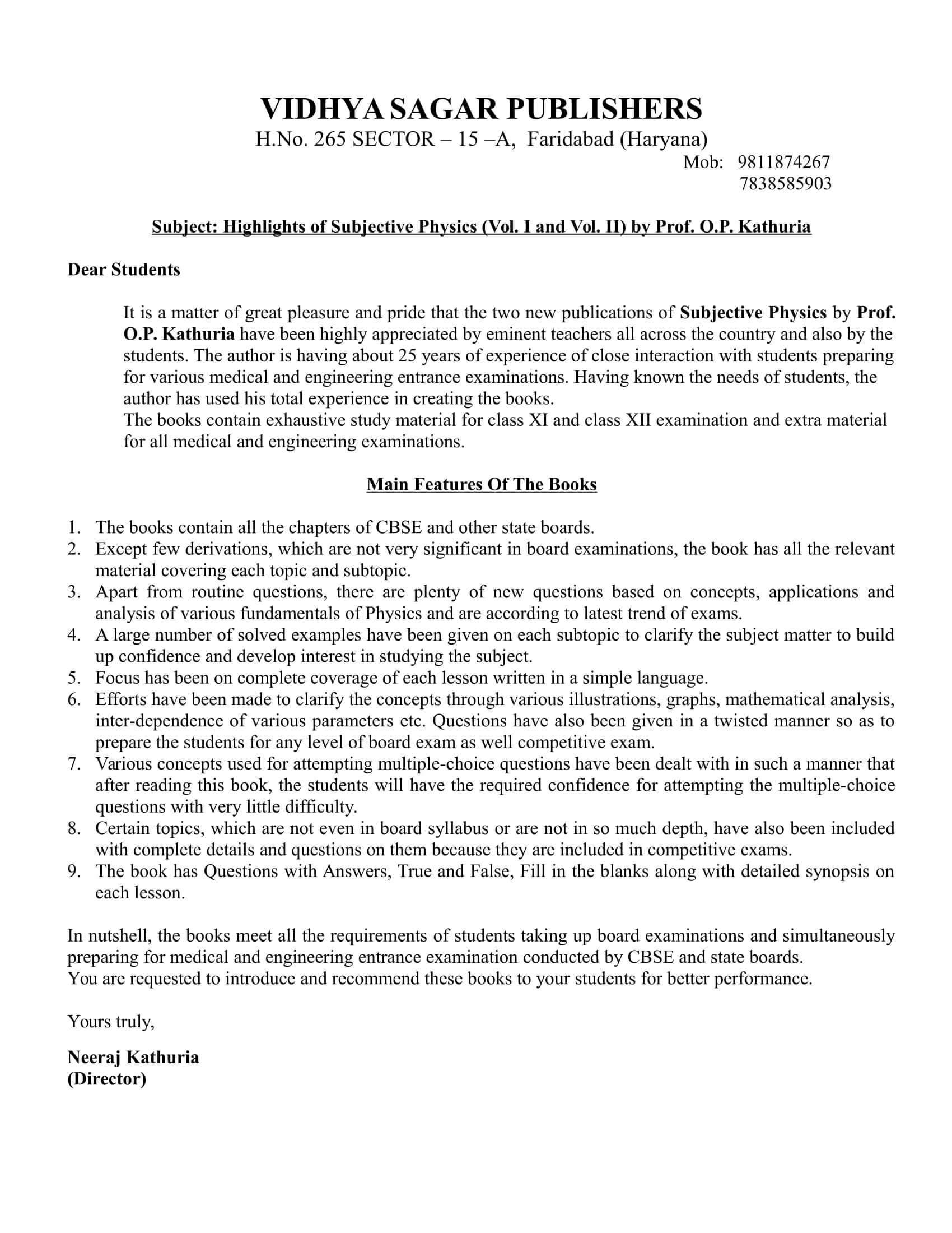 My close interaction and long experience of about 25 years with large number of students has given me an idea to present the study material and questions with their answer/solution in the present form in my first edition of this book. The questions and their answer/solution have been presented in such a manner that students will definitely benefit from the book. More focus has been on concepts, applications, cross chapter applications to enhance the analytical skills of students which is definitely the requirement of pattern of examination today.